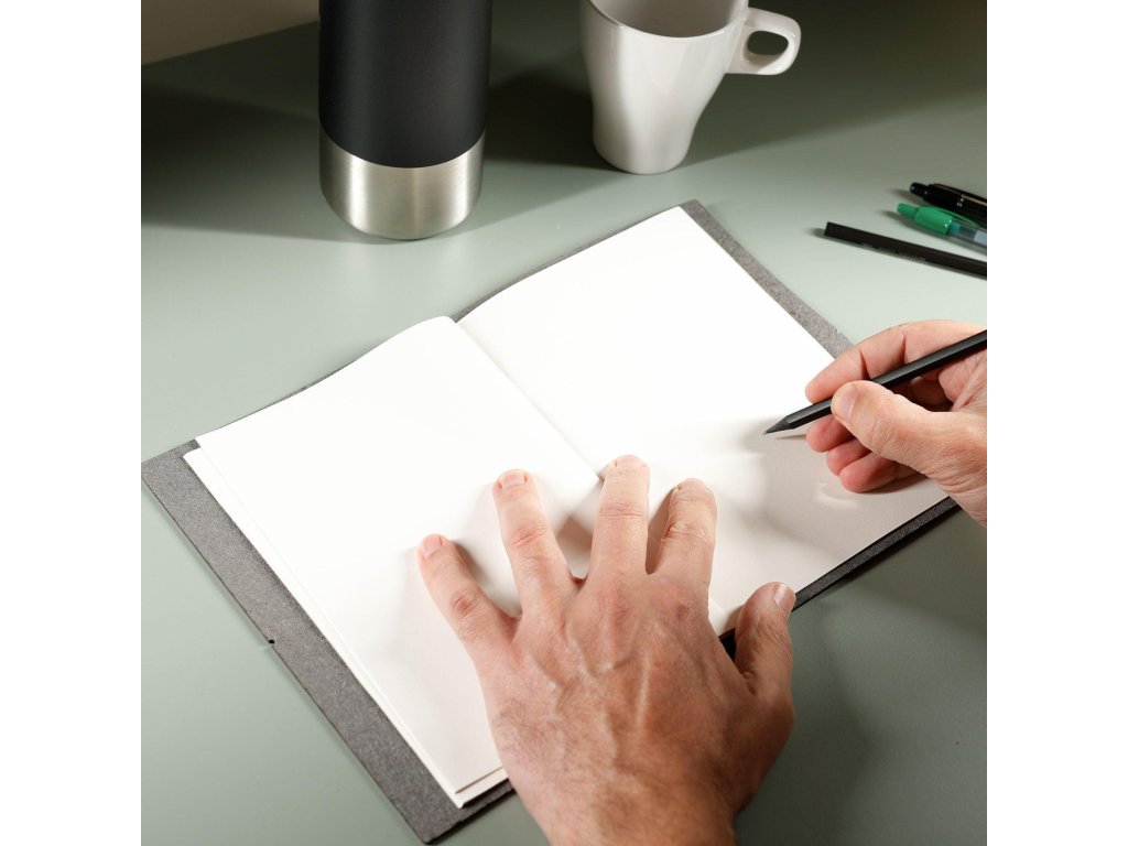 Uvnitř vložený zápisník s 32 nelinkovanými stránkami z recyklovaného papíru (FSC certifikace)