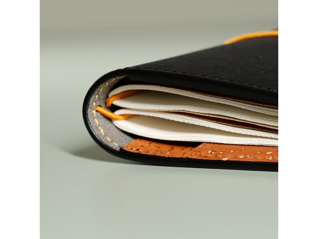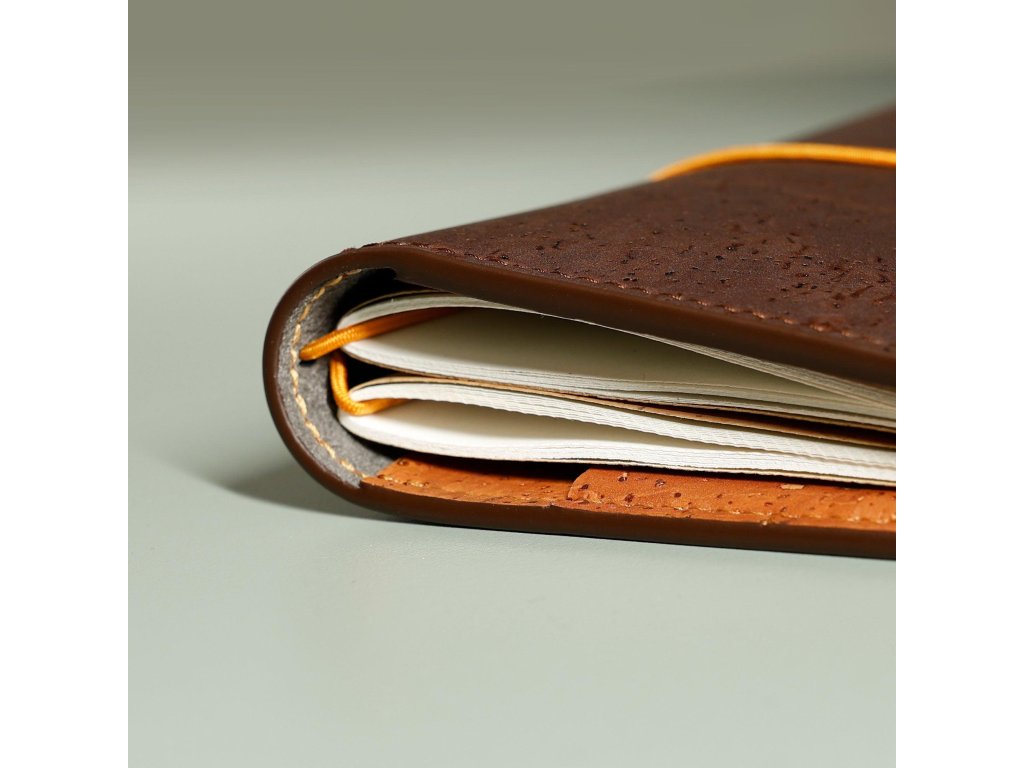Luxusní korkové portfolio v kompaktním formátu nabízí minimalistický design, ekologické materiály a praktické uspořádání. Díky dvěma elastickým páskům se snadno otevírá a uzavírá, zatímco uvnitř najdete zápisník s korkovým papírovým přebalem a 32 nelinkovanými stránkami z FSC recyklovaného papíru. Měkký a poddajný povrch zajišťuje pohodlné každodenní používání.