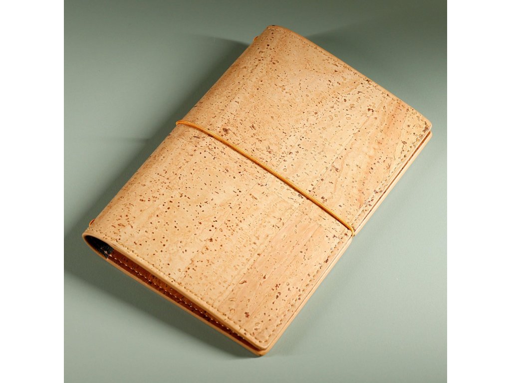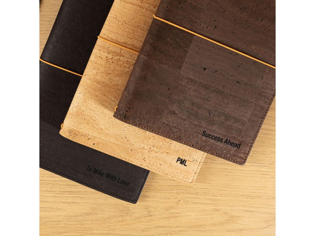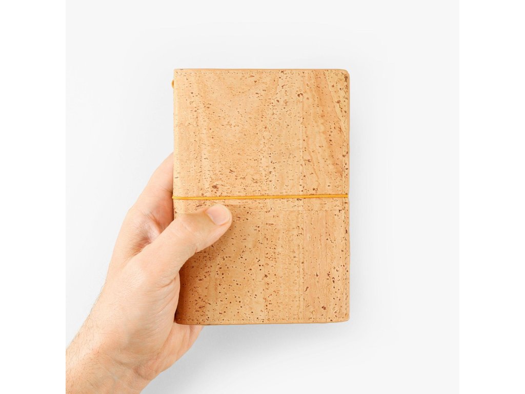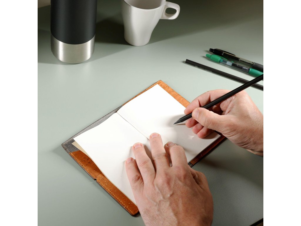 • Zápisník: korkový papírový přebal, 148.5 × 105 mm, 32 nelinkovaných stran, gramáž 100 g, FSC recyklovaný papír
