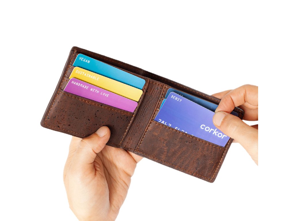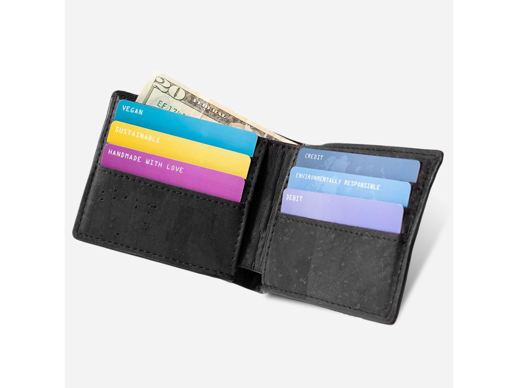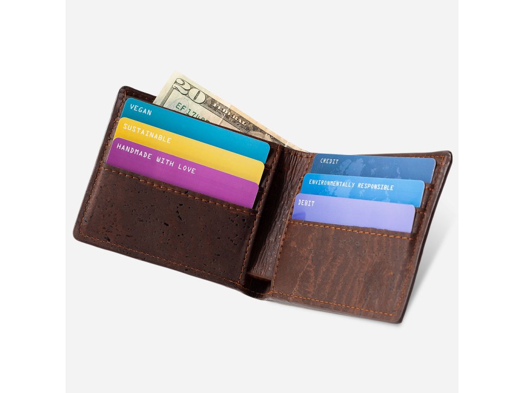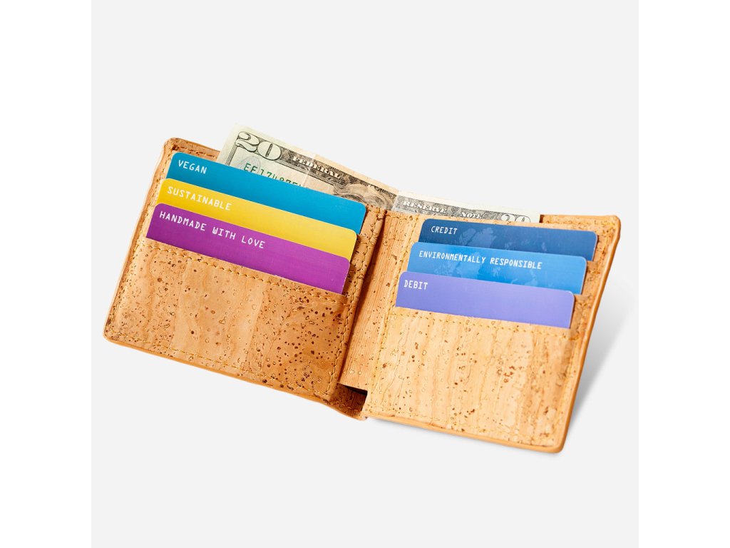 Mějte karty i hotovost vždy po ruce s pánskou peněženkou Bifold, eticky vyrobenou a PETA schválenou z prvotřídní korkové kůže. Tento ručně zpracovaný kousek zaujme odolností, lehkostí a originálním vzhledem, zároveň nabízí čisté a praktické uspořádání pro každý den.
