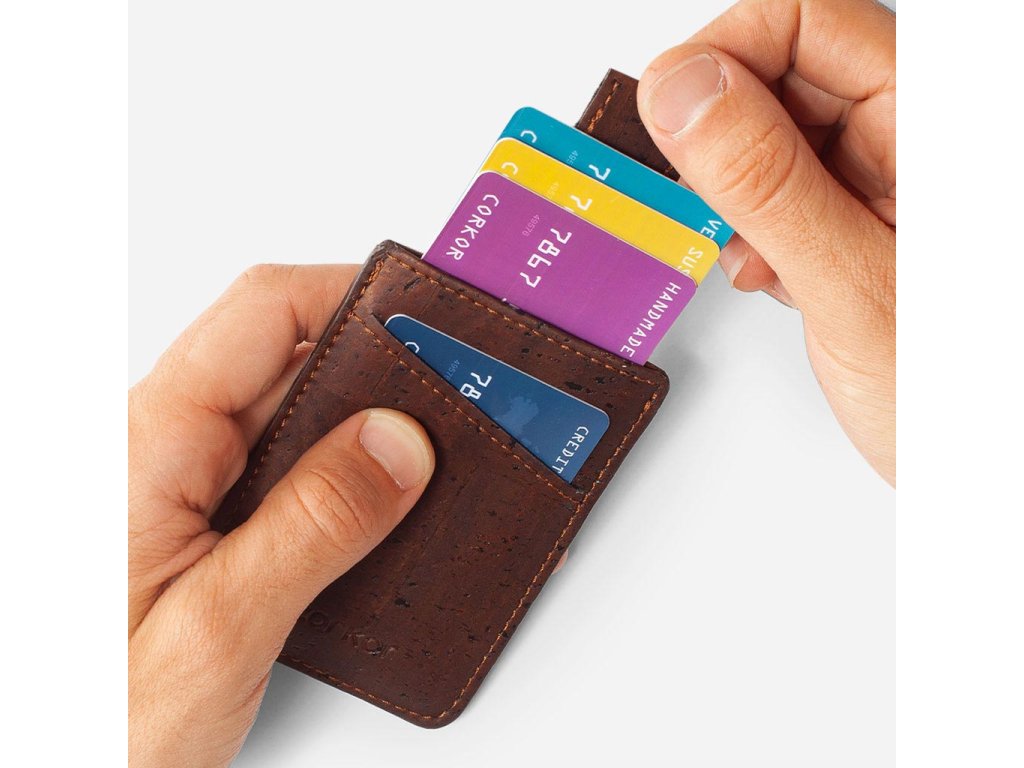 Mějte své nezbytnosti vždy po ruce s touto stylovou korkovou peněženkou. Veganská peněženka na karty z prvotřídního hnědého korku, s podporou PETA, má elegantní siluetu a bezpečně uschová vaše karty i hotovost.
