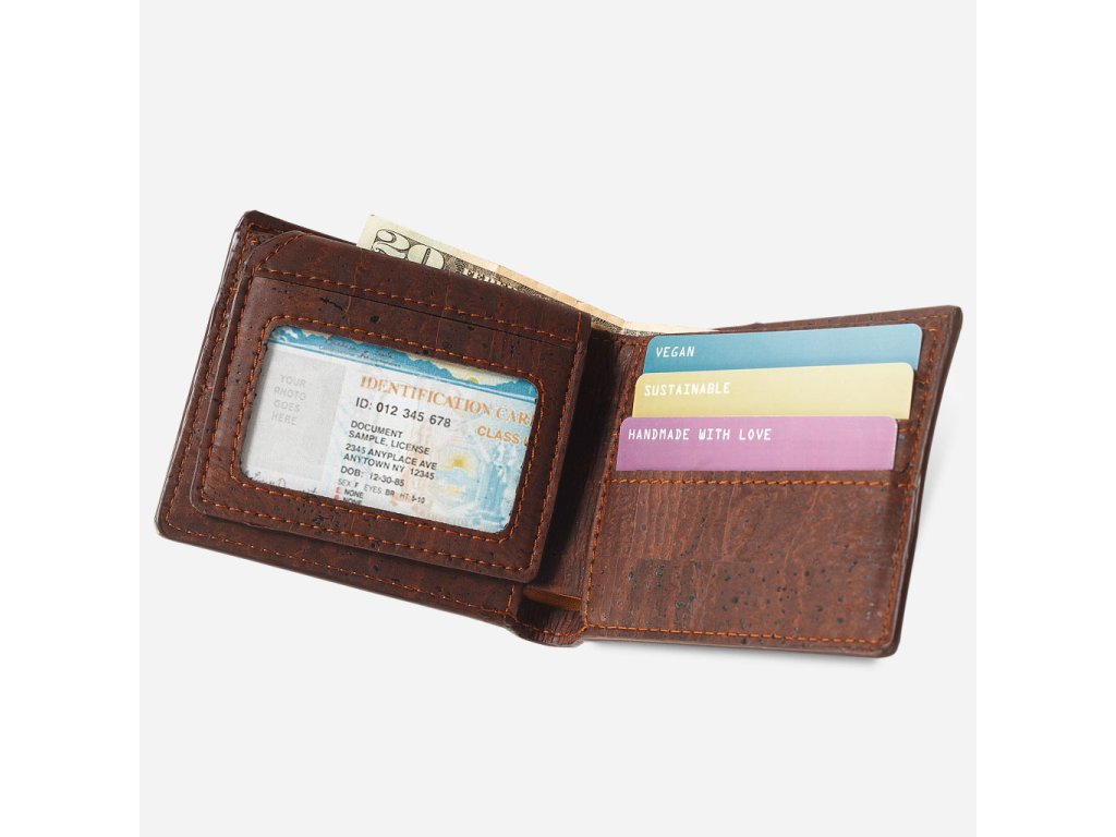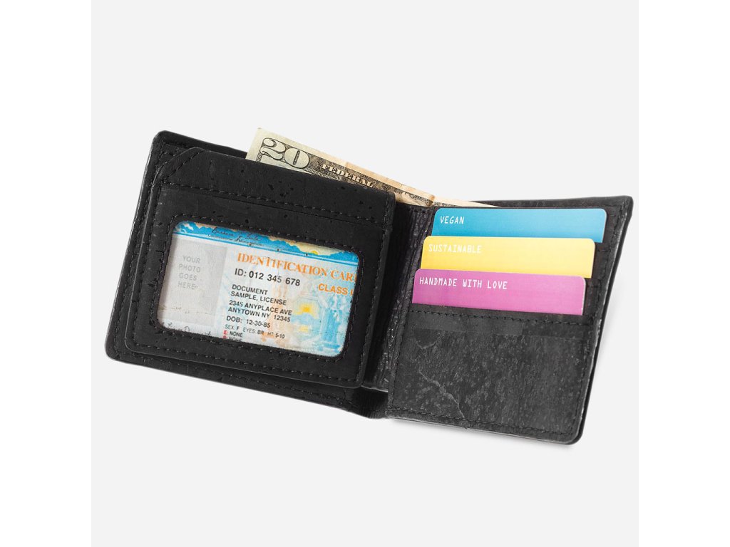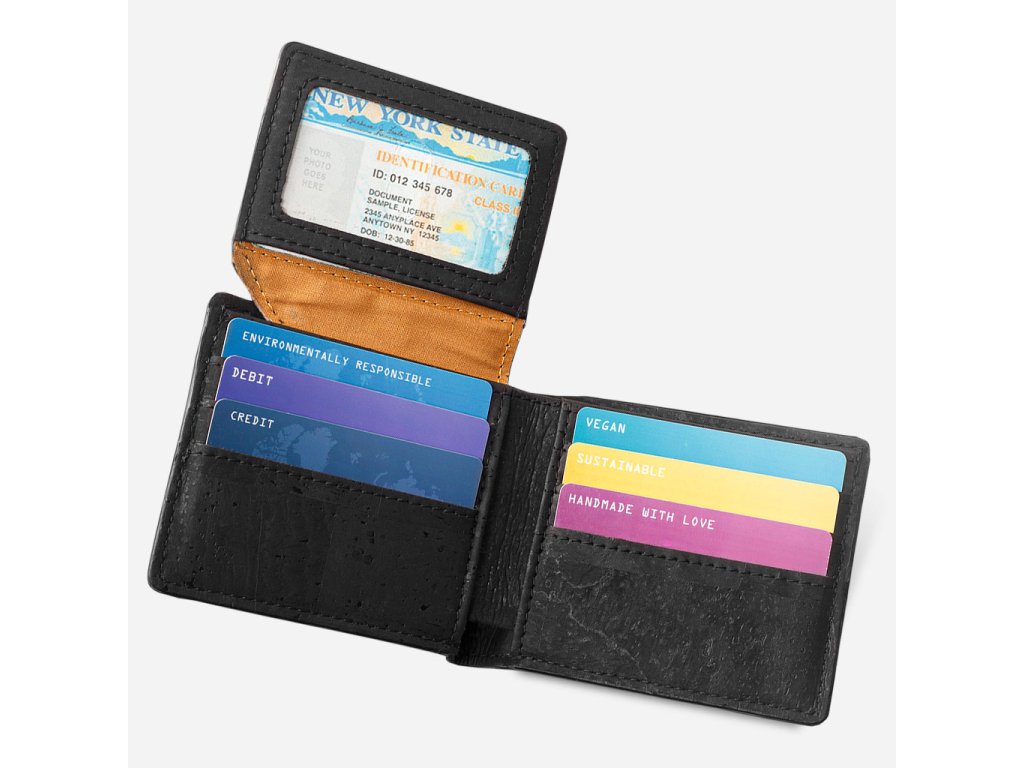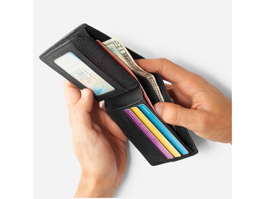 Nadčasová peněženka typu bifold (passcase) s precizním zpracováním a elegantním vzhledem. Po otevření nabídne promyšlené uspořádání včetně výklopné části na doklady. Pokud hledáte špičkovou veganskou alternativu ke kůži, tato peněženka s označením PETA Approved nezklame.