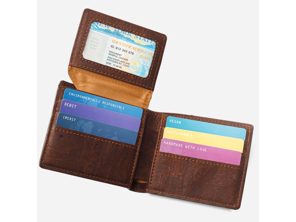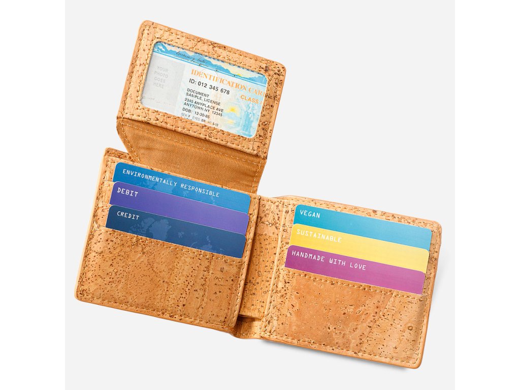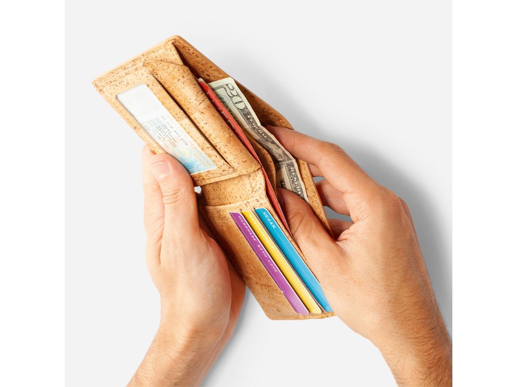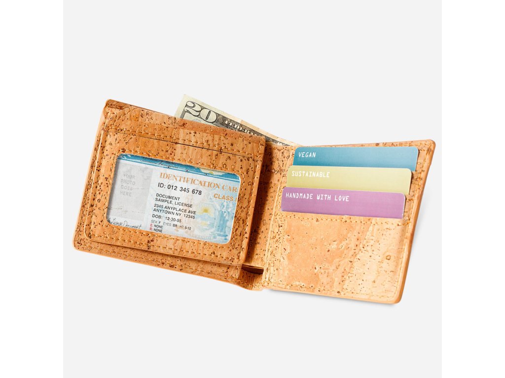 Nadčasová peněženka typu bifold (passcase) s precizním zpracováním a elegantním vzhledem. Po otevření nabídne promyšlené uspořádání včetně výklopné části na doklady. Pokud hledáte špičkovou veganskou alternativu ke kůži, tato peněženka s označením PETA Approved nezklame.