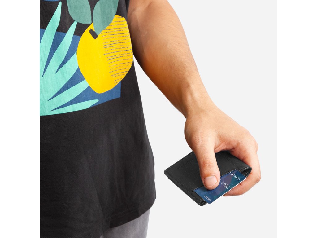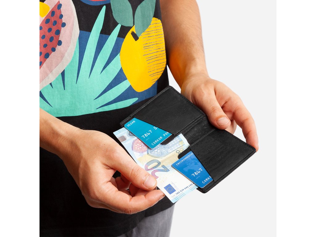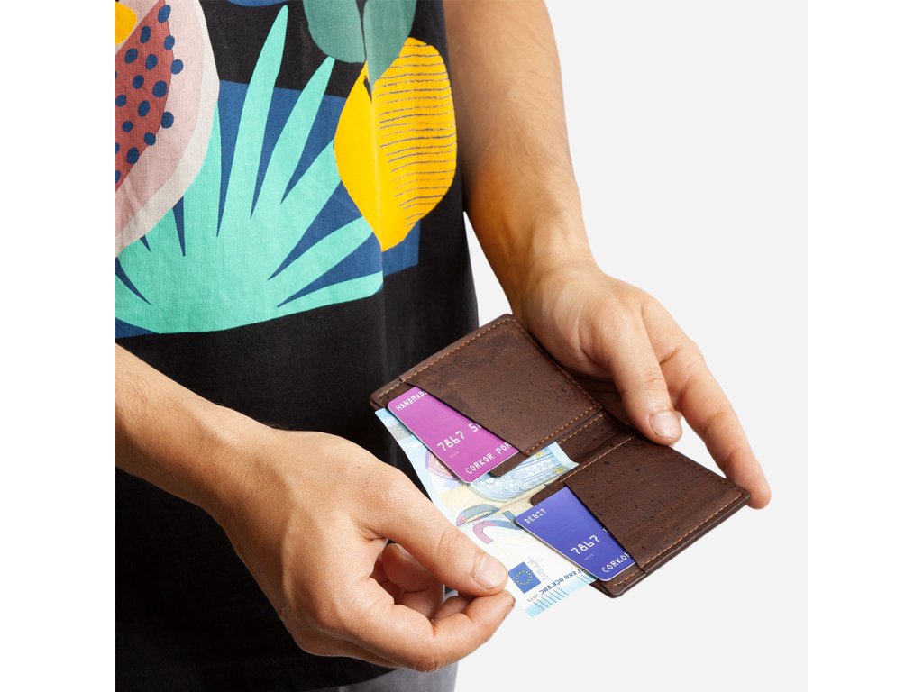 Hledáte tenkou peněženku, která si rozumí s veganským životním stylem i vašimi kapsami? Seznamte se se Slim Cork Wallet. Vyrobená z kvalitního korku, je lehká, odolná a minimalistická – vaše denní nezbytnosti udrží po ruce, aniž by zbytečně přidávala objem. Oblé hrany se snadno zasouvají do kapsy, dvě rychlopřihrádky na karty plus jedna z vnější strany zajistí bleskový přístup a vzadu najdete plochou kapsu na bankovky (nebo dvě, pokud nosíte bankovky přeložené). Štíhlý profil, překvapivě hodně místa – ideální na každý den.