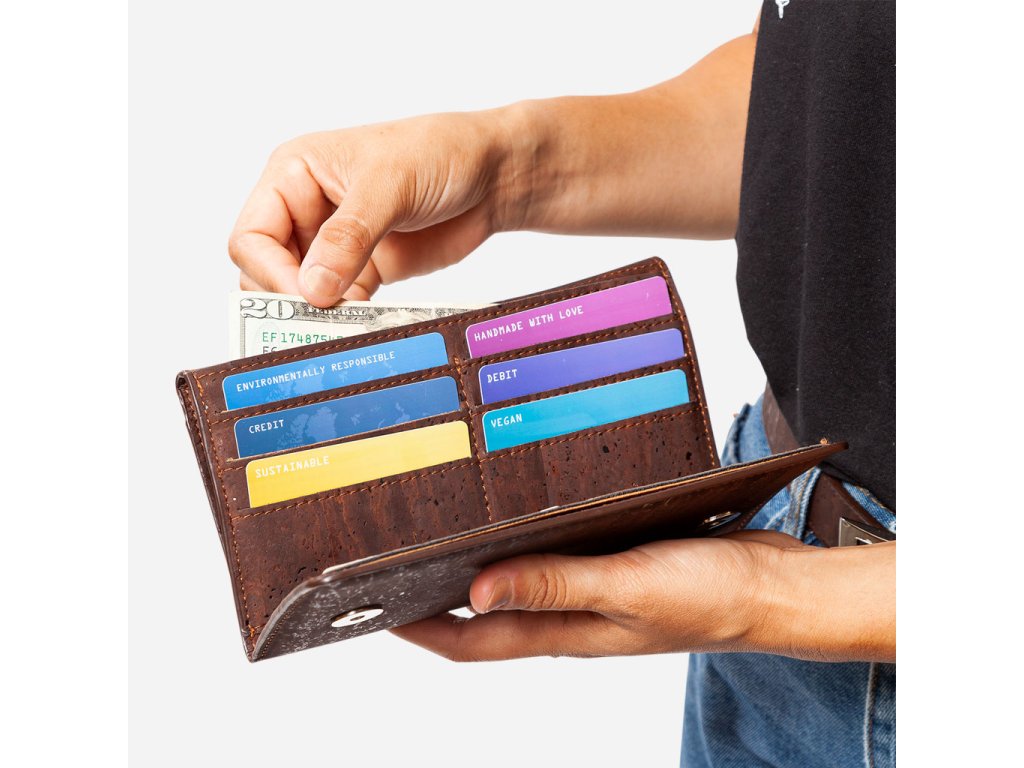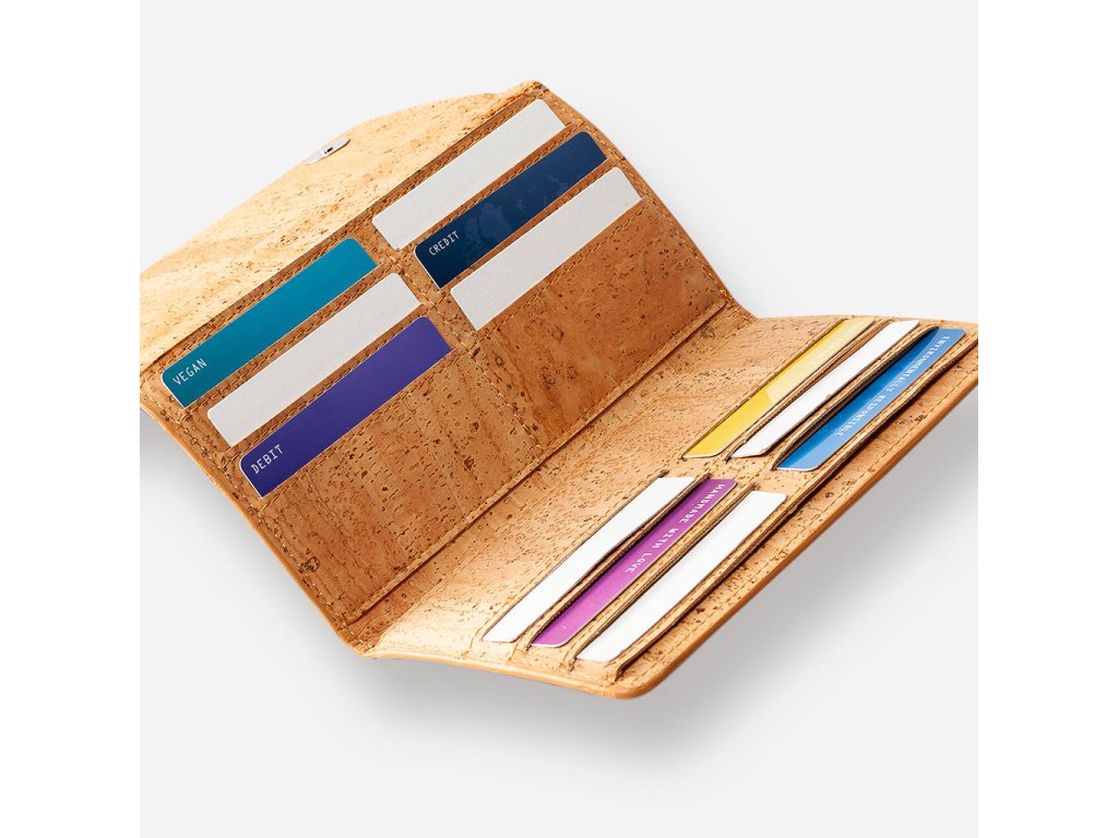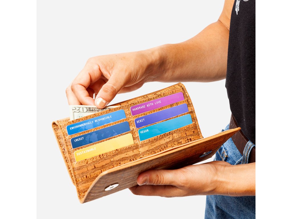 Štíhlá korková peněženka je elegantní veganský doplněk z pravého přírodního korku. Díky chytře navrženému vnitřnímu uspořádání bezpečně uloží bankovky, mince i až 24 karet. Je lehká a kompaktní, snadno ji schováte do kabelky a budete mít vše po ruce každý den.