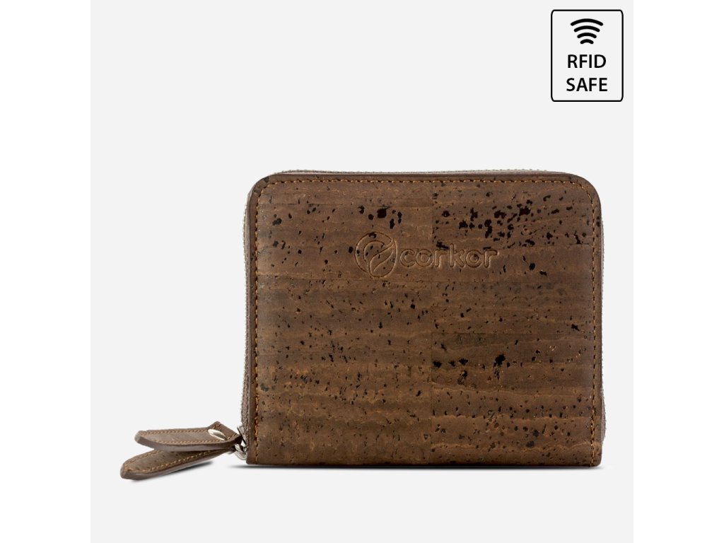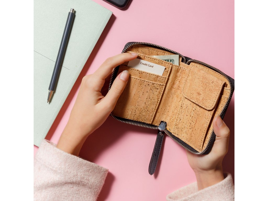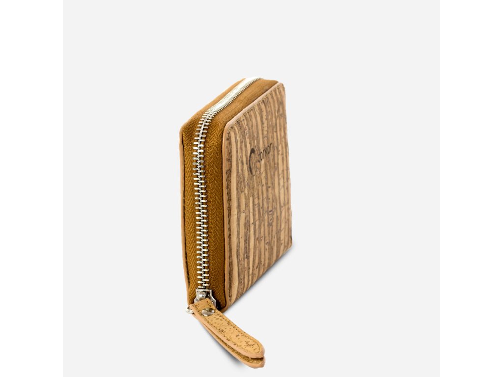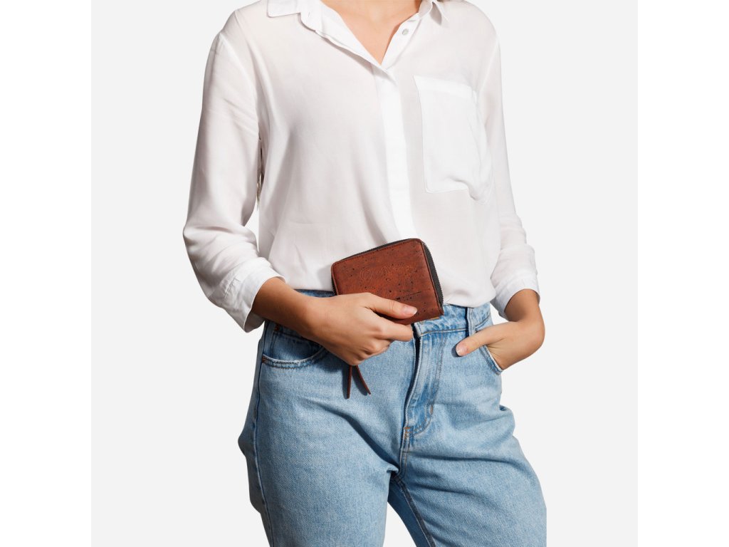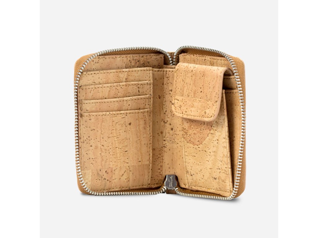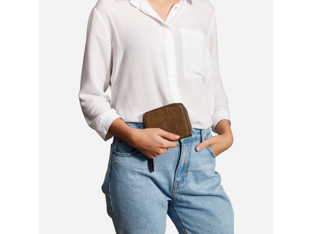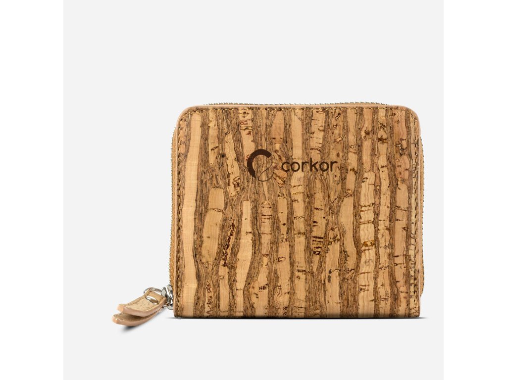 Malá korková peněženka z pravého korku zaujme rozepínáním na zip po celém obvodu a promyšleně uspořádaným vnitřkem. Přestože je kompaktní, tato veganská peněženka pojme vše potřebné – karty, bankovky i drobné – a lehce se vejde do každodenní kabelky.